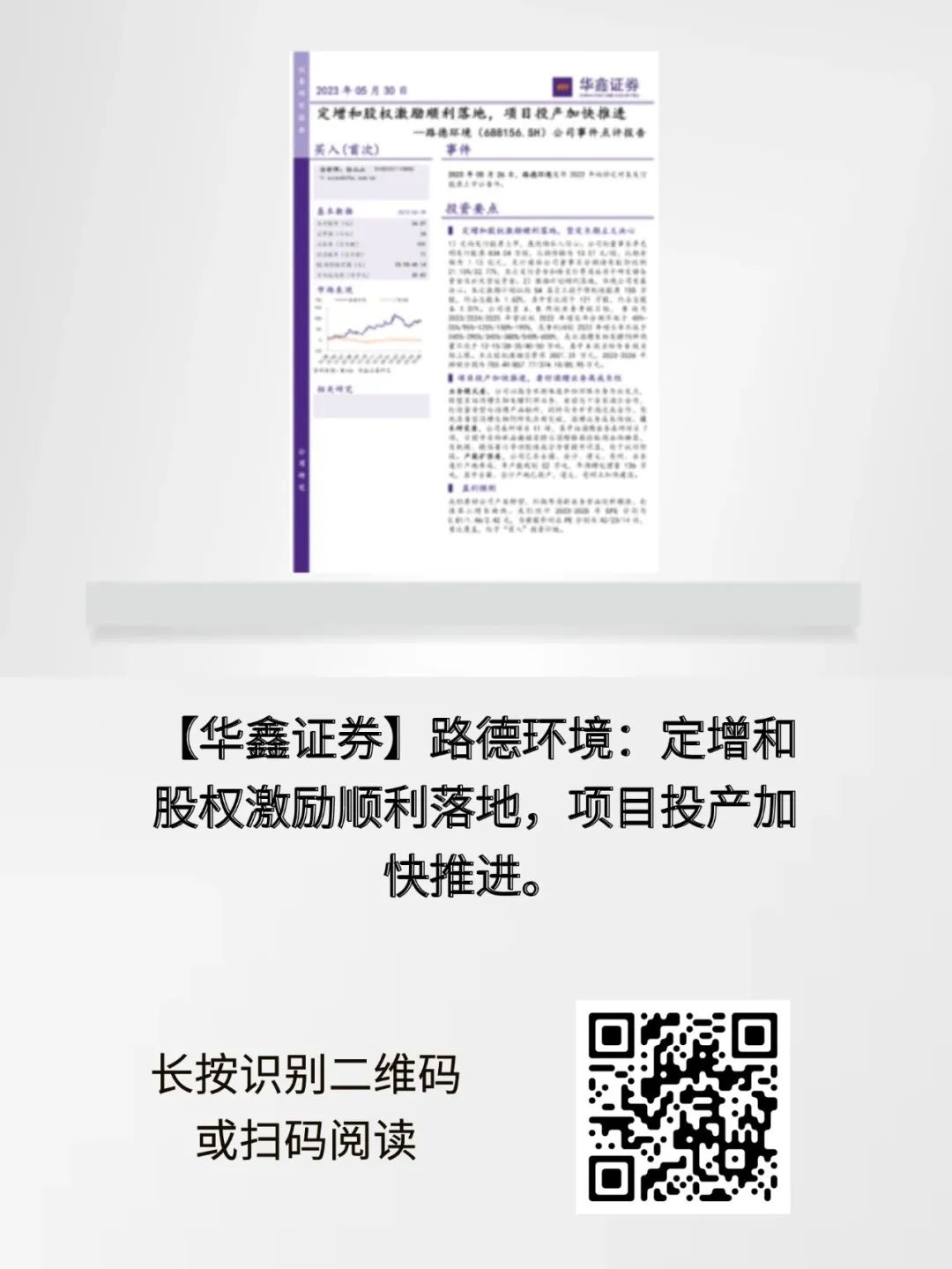 2023年5月26日,路德環境發布2022年向特定對象發行股票上市公告書。華鑫證券發布事件點評報告,首次覆蓋就給予了“買入”評級。
