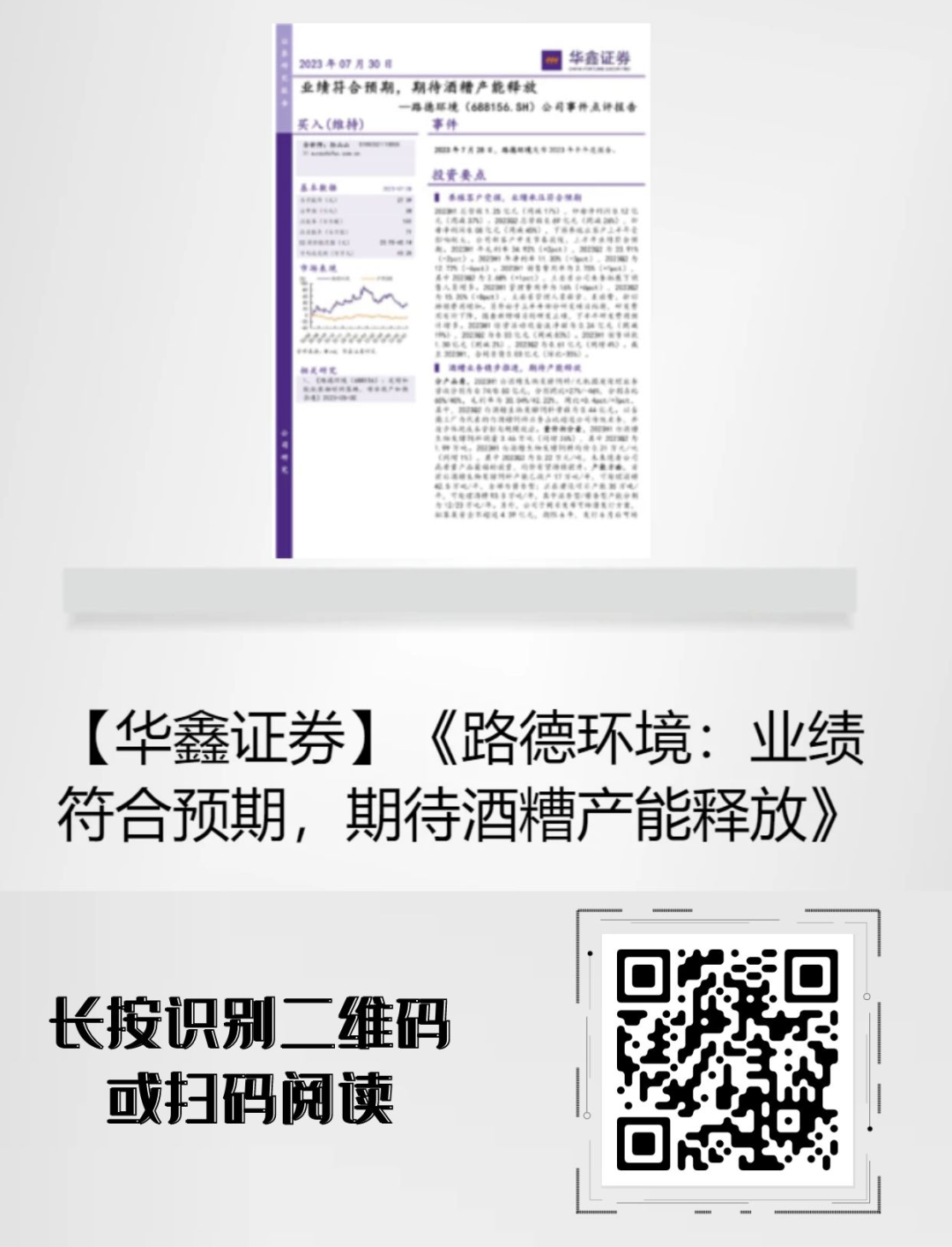 【點評報告】華鑫證券點評路德環境:業績符合預期,期待酒糟產能釋放